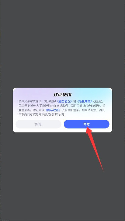 1、初次使用需阅读用户协议与隐私政策,确认无误后点击同意按钮进入登录界面。