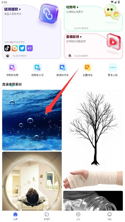 4、功能全面,除了视频处理,还提供高清素材推荐,为用户带来创作灵感,提升内容质量。