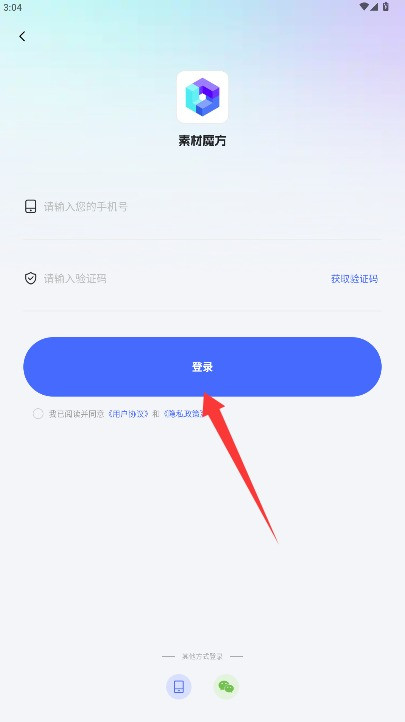 2、在登录界面输入手机号和短信验证码,勾选同意相关协议后点击登录按钮进入。