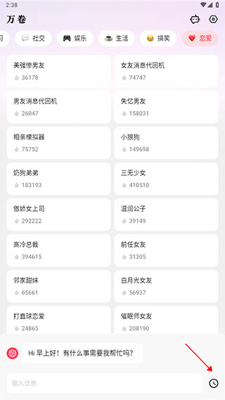 5、最后点击箭头指示的按钮,会出现历史提问;