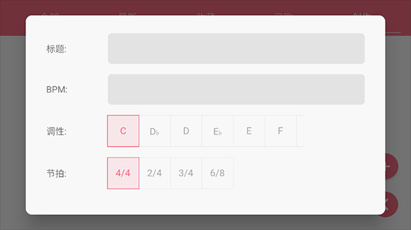 3、轻点+号,输入您歌曲的基本信息,点击确认即可进入创作界面。