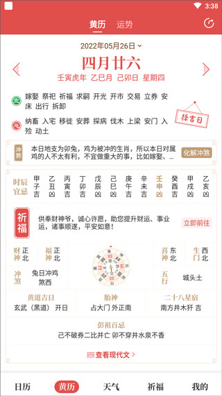 3、掌握吉时选择,天天吉历提供了每日的吉时推荐,用户可以在特定时间进行重要活动,如结婚、搬家等,以增加吉祥和顺利的机会。
