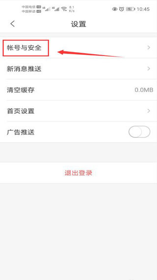 3、接着在设置中点击账号与安全。