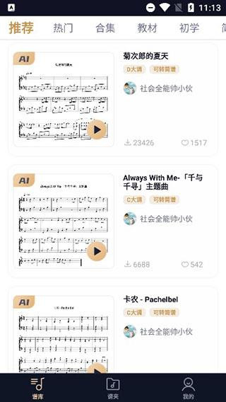 1、强大的乐谱库收录众多经典曲目,用户可随时线上查看。
