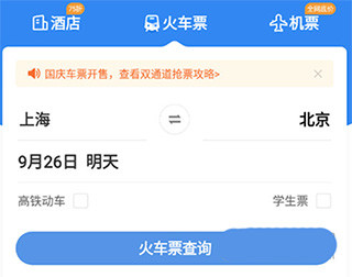 1、在主界面就可以查询火车票了,选择自己需要的时间为地点之后,点击火车票查询。