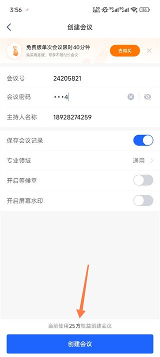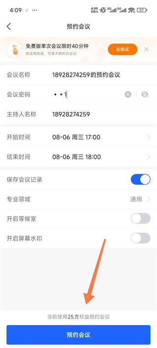 第一步:点击界面上的【预约会议】填写预约会议内容