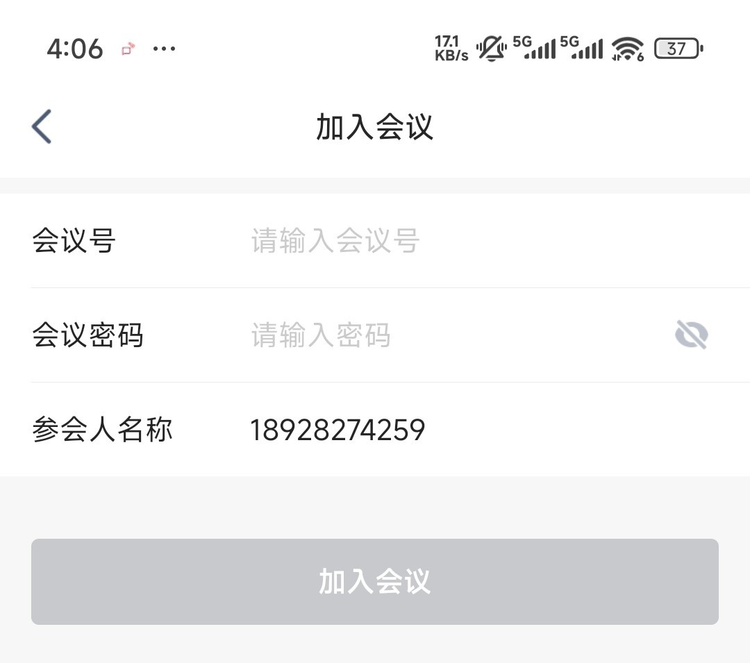 点击主界面【加入会议】输入会议密码、参会人名称-加入会议