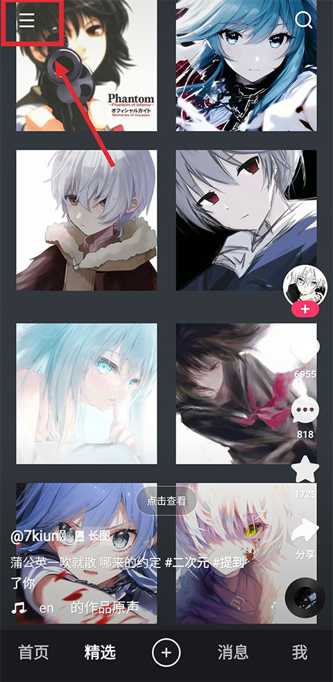 2、然后点击左上角的三调杠,打开侧边菜单。