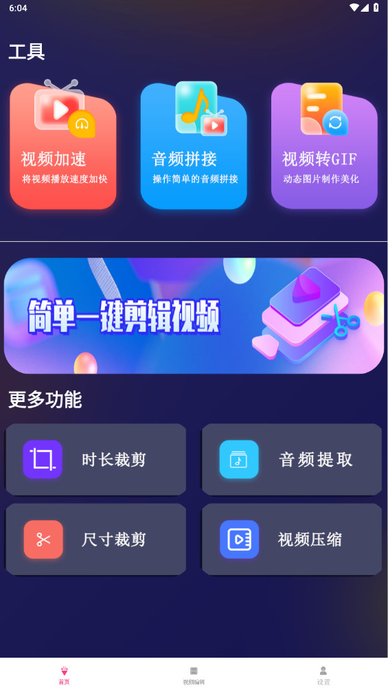 1、软件拥有很多功能,包括视频加速、音频拼接、视频转GIF等。不仅如此还有时长剪辑、音频提取、尺寸剪辑、视频压缩等强大的视频编辑功能。