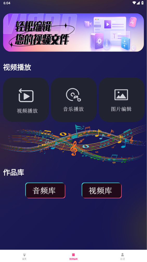 2、在视频剪辑功能当中,用户可以选择自己库中的视频或者音频进行播放,还可以编辑你图库中的照片等文件。