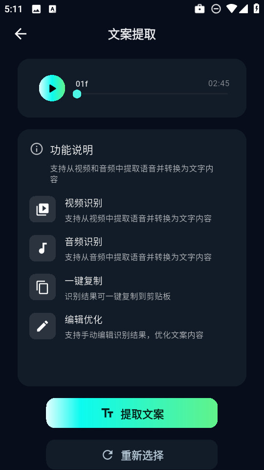 3、支持两种形式,这里小编选择的是音频,从音频中提取文案。