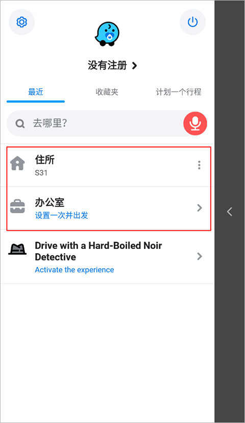 2、你可以在此页面设置住所和办公的地址,点击任意一个之后即可开始导航驾驶了。