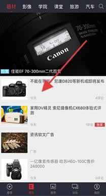 2、点器材栏,浏览各类摄影器材资讯,如相机、镜头等产品动态,了解行业新消息,按需点击感兴趣内容深入查看。