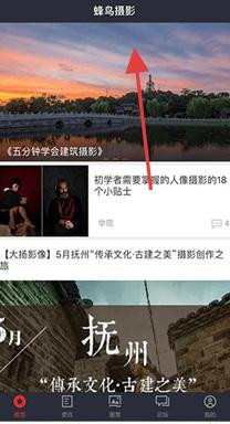 3、点击APP顶部蜂鸟摄影标题旁区域,进入资讯页,这里有摄影教程、活动招募等内容,按需浏览,获取摄影知识与活动信息。