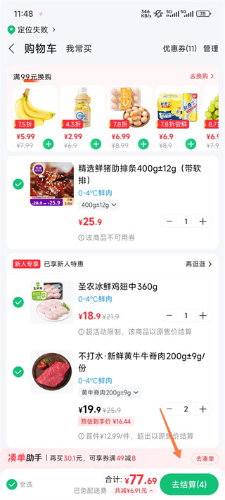 2、新人专属特权:加入即享超值优惠,快来开启购物之旅 3、最快30分钟送达:风雨无阻,新鲜到家4、天天低价:限时秒杀,月中半价