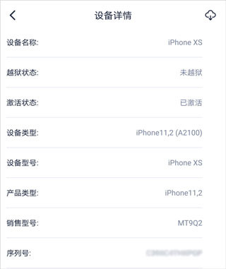 此时可以点击下方的“查看设备详情”,查看 iPhone 的详细信息:包括越狱状态、序列号、ECID、生产日期、电池寿命、固件版本等详情。