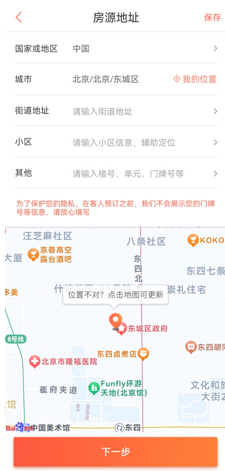 5、之后选择床型、宜住人数、能否额外加床,继续点击下一步。