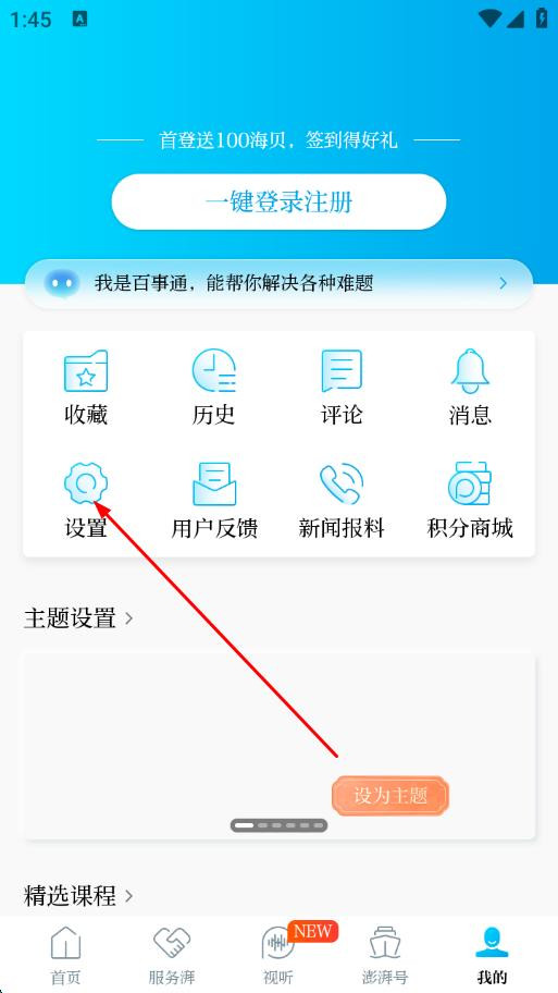 1、打开澎湃新闻App,点击底部导航栏最右侧我的选项,进入个人页面。