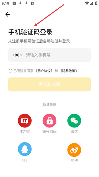 1、登录页面支持手机验证码登录,未注册手机号验证后自动注册,也可通过IT之家、账号密码、微信、QQ等快捷登录。