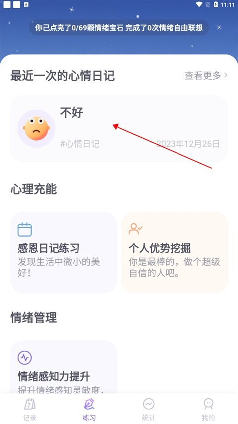 2、提供了很强大的分析功能,能根据用户的记录情况进行精准的分析,用户可以更好地掌控自己的情绪变化。