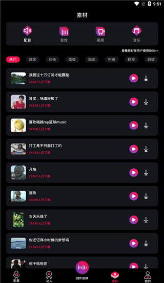 1、用户可以轻松下载并使用平台提供的各类视频、音效、配音、音乐素材,自由创作个性化作品。